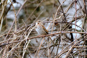 I spotted this Song Sparrow (Melospiza melodia) while on another river trail walk. The song it sings always reminds me of a beautiful summer day. I believe this little bird is a female due to the lighter colours, but I am unsure. All resources I’ve accessed don’t have too many details except that their colours are similar.